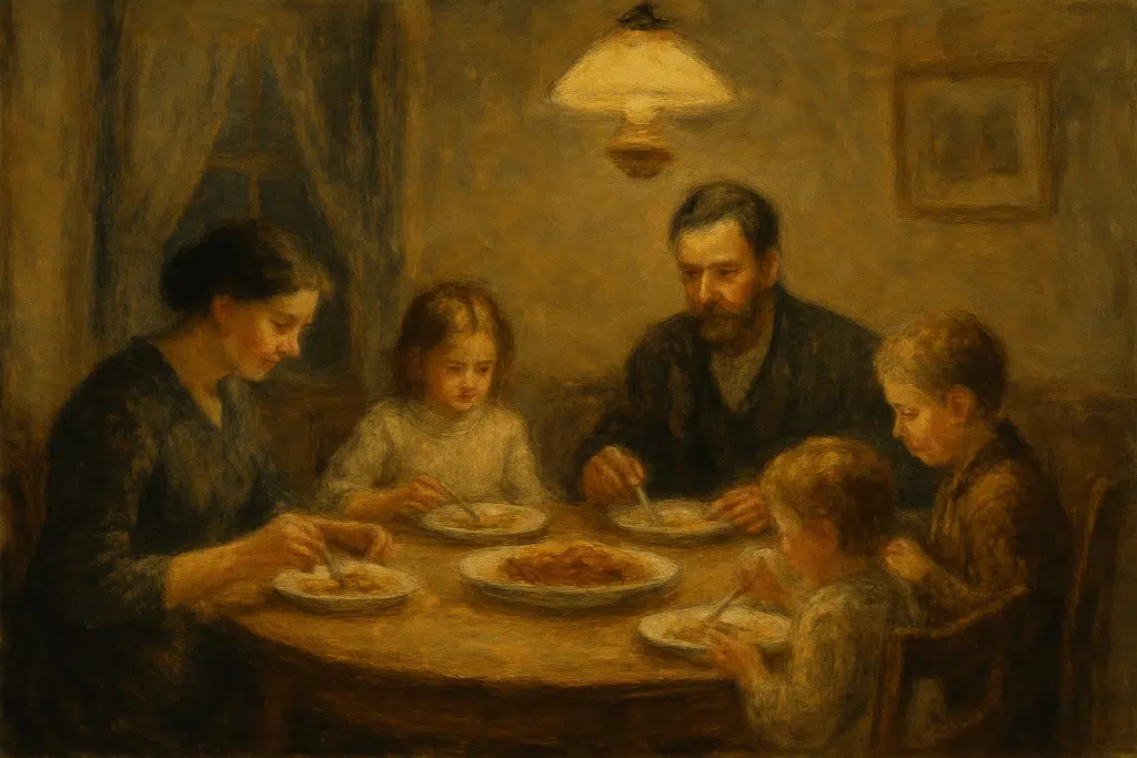 Instead, in far too many modern homes, the members of the family take their nourishment isolated, at random moments. If they do gather together, they are either staring at a TV, or at their smartphones. There is little in the way of laughter, conversation, or that intimate silence that is the hallmark of a deep, comfortable love.